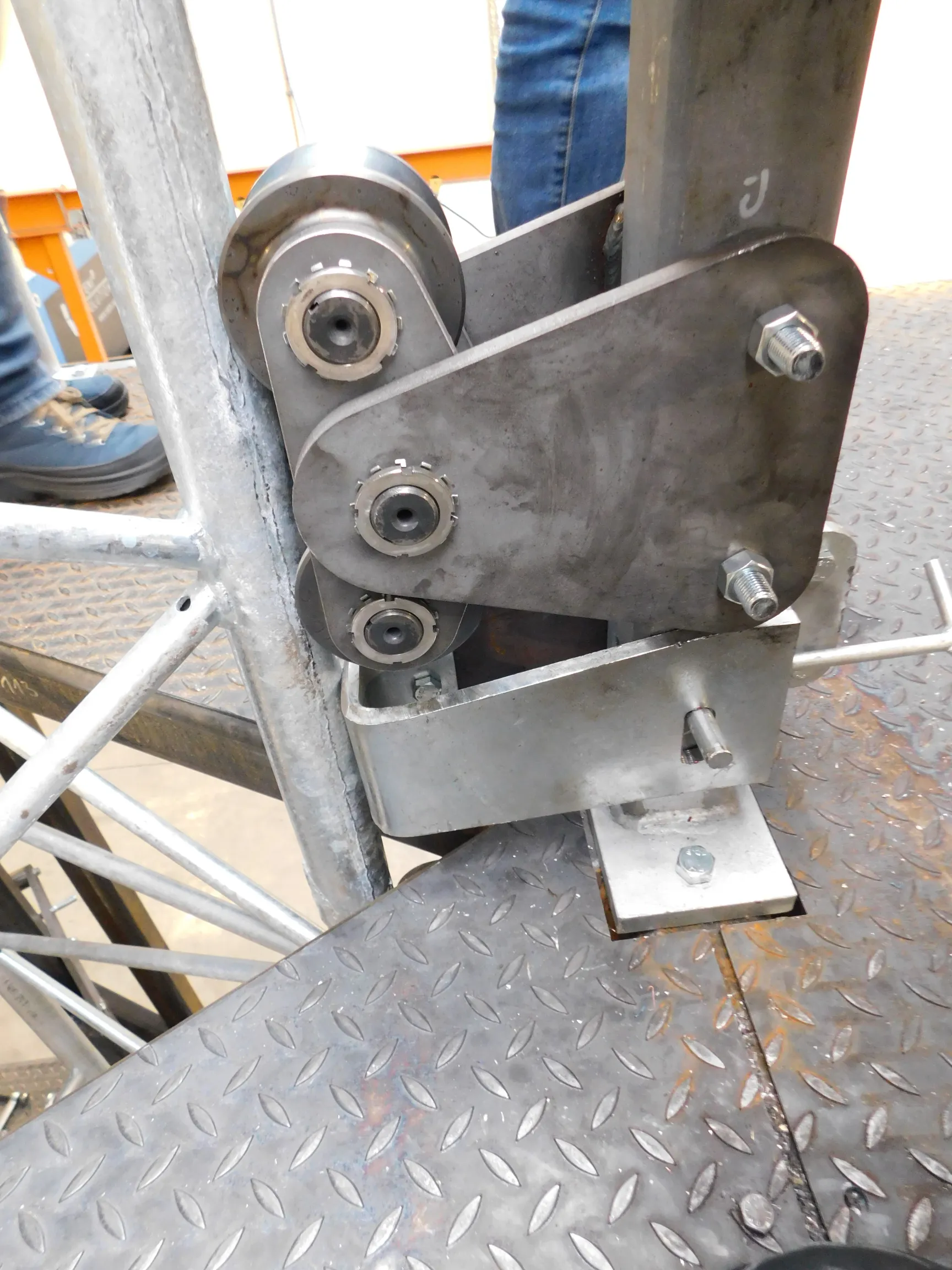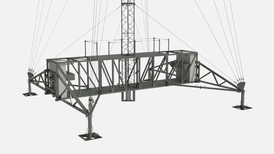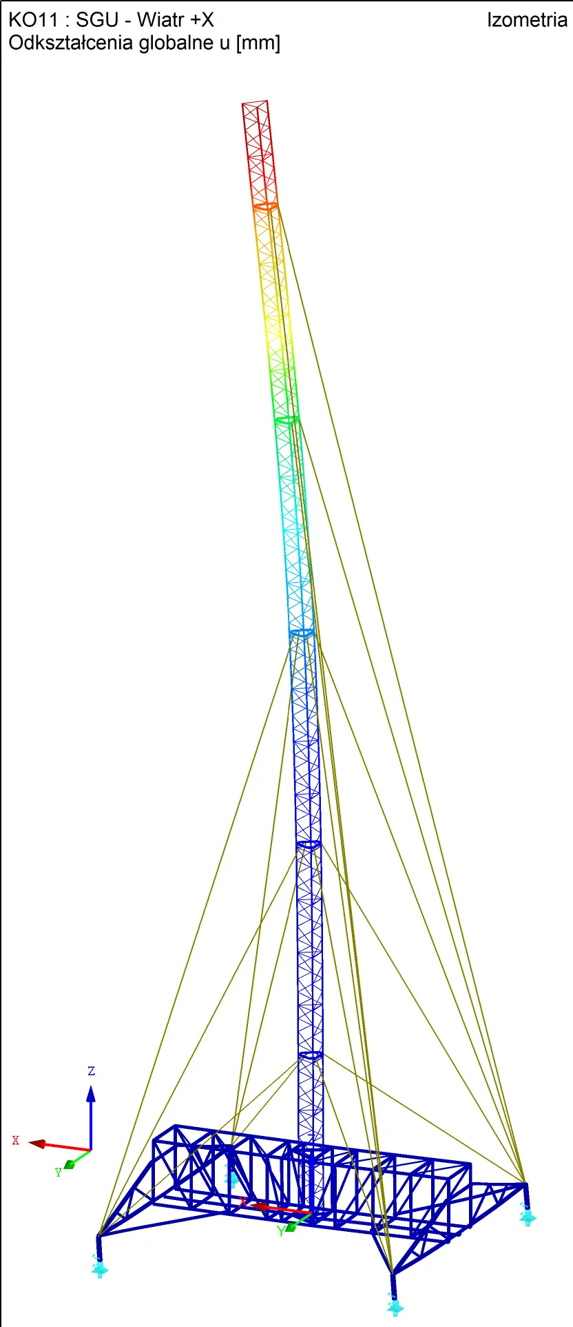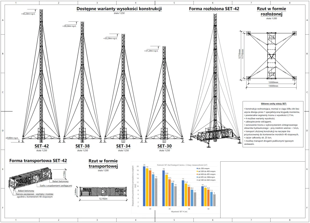 The shaft is erected using a hydraulic actuator controlled by an electric pump. The assembly work is planned to be performed by 1 specialist team of steel structure assemblers within a maximum of 2-3 days.